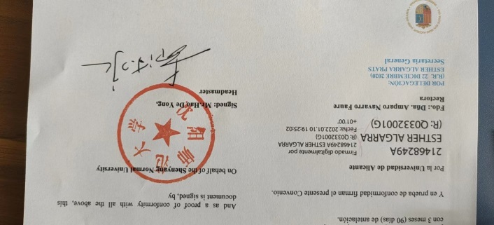 4月25日,学校与西班牙阿利坎特大学(Universidad de Alicante)正式签署合作交流协议,开创了学校法学类专业中外合作交流的先河,填补了学校法学类专业国际化教育领域空白,有力推进了学校法学国际化进程与跨越式发展。